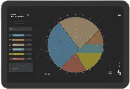 Career Constellations organizes career data to help users turn their exploratory interests into clear, actionable insights for their future.Core Features